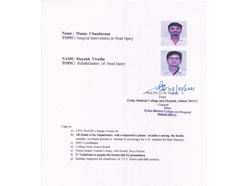 • Hospital Address: Zydus Medical College and Hospital, Station Road, Dahod-389151,Gujarat-India.