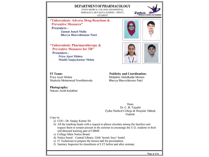 • Hospital Address: Zydus Medical College and Hospital, Station Road, Dahod-389151,Gujarat-India.
